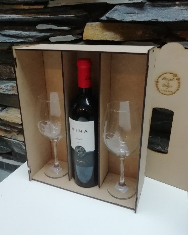Caja para Vino y Dos Copas
